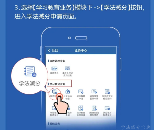 “学法减分”可以分为三个主要步骤,分别是申请、学习和考试。机动车需要注册并登录“交管12123”APP,在“学习教育业务”中的“学法减分”模块进行学习和考试。学习、考试中,交管部门将随机进行人脸识别抽查。