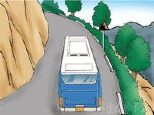 8、驾驶客车在图中所示的山区道路上坡转弯路段行驶,要注意的事项有( )。
